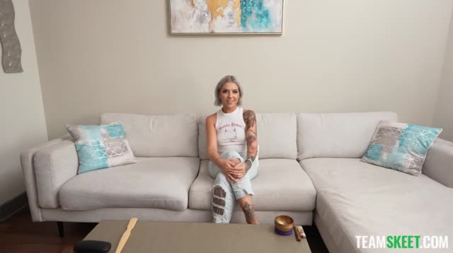 Busty tattooed babe Luna Legend has her friend's boyfriend check out her new tits....and fuck her wet pussy!
