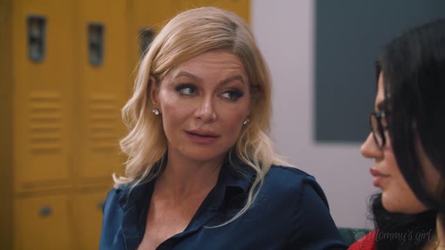43 year old stepmom Julia North asked her 19 year old stepdaughter Mitzi X to make her come
