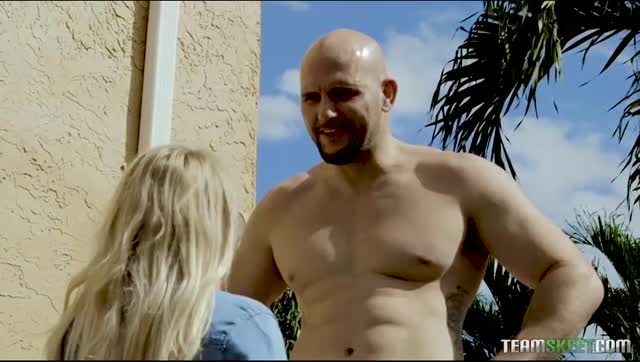 Busty blonde Elana Bunnz takes on neighbor's big black cock
